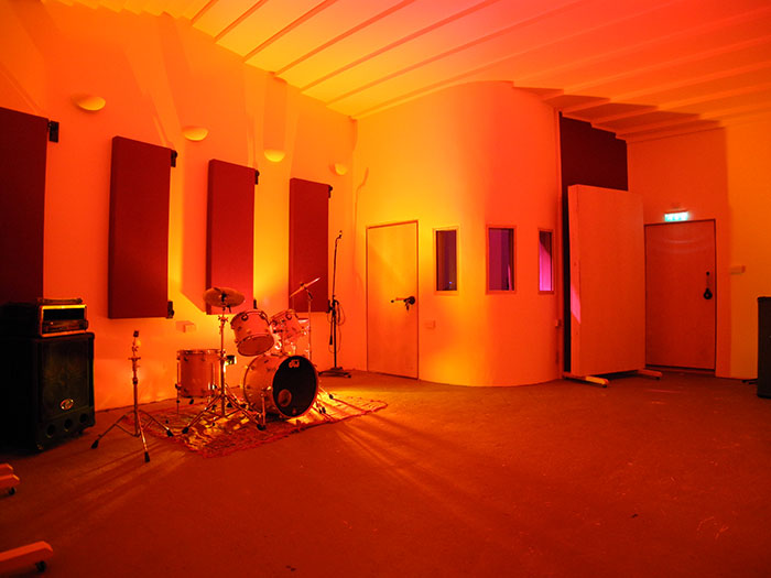 Circle Recording Studios in Birmingham England has one of the best sounding live rooms in England. At approximately 550 sq feet with an 18 foot ceiling, the Big Room (which is home to our beautiful piano) can easily accommodate 12-15 musicians and that’s without reference to its large isobooth (which is 70 sq feet and has a 13 feet ceiling). And while the design brief was to be the best room in the UK to record drums, that’s not all it does do. No less than twelve reversible acoustic panels, which are absorptive on one side and have binary amplitude diffusion on the other, means you can change the acoustics of the room to fit the track or instrument you are working on. From tight and dry to spacious and airy, this recording studio, in the heart of Birmingham (England), does it all.